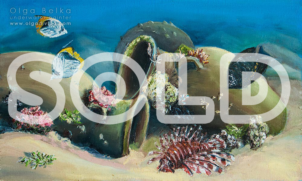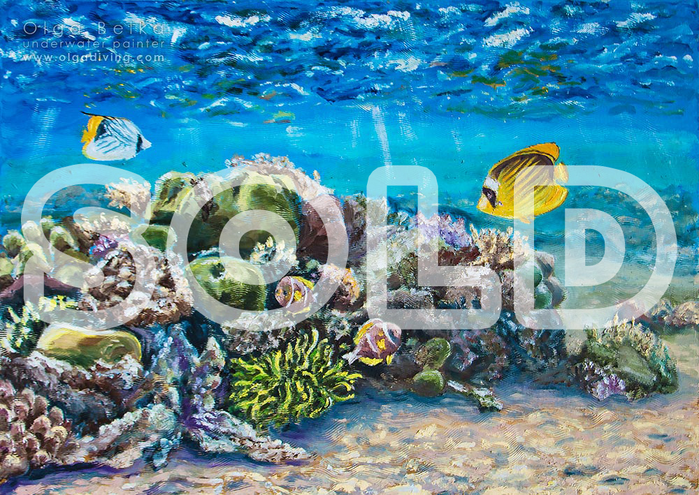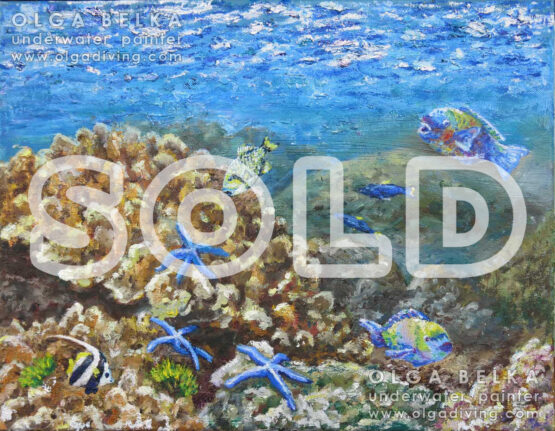 The online store of Olga Belka’s underwater artworks. Please, choose the artwork and press “Buy”. Then you can choose whether you want to purchase the original painting or a copy printed on canvas with an autograph of the underwater artist.